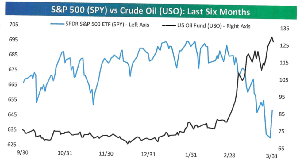 It is good that investors are focusing on variables other than the war, but the damage to the global energy infrastructure has been severe. Even with a ceasefire holding, the physical damage to the petroleum system is extensive and will take months to work through. An EU airports trade group warned that without fully reopened Hormuz transits within three weeks, jet fuel shortages would be systemic across Europe. Investors won’t completely forget about the war especially since crude oil and stocks have been closely correlated (inversely) since the war began. See the graph below. Notice the blue line plunging (S&P 500) while oil (USO) spikes higher since early February:
